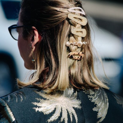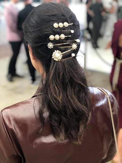 I saw Melly Singer, Fashion Editor the Sydney Morning Herald at Fashion Week with all types of clips styled with a pearl clip at the top. This creates a more edgy look.