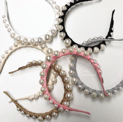 If you’re not a clip person, fear not, there’s other ways you can wear pearls in your hair. One way is a pearl headband. Viktoria Novak is creating some beautiful pearl headbands that can be used for a day at the races, a wedding, ladies lunch, a bridal shower or to elevate your hair for a beautiful luxe look.